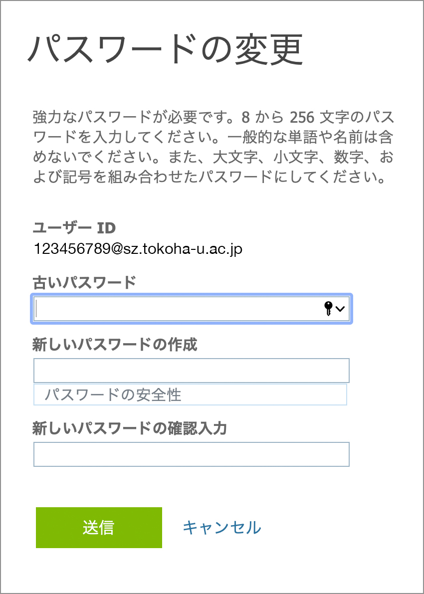 - パスワードは、忘れないように控えておく。パスワードを忘れた場合、Web版Microsoft 365の場合はシステム管理者によるリセットが必要となる。