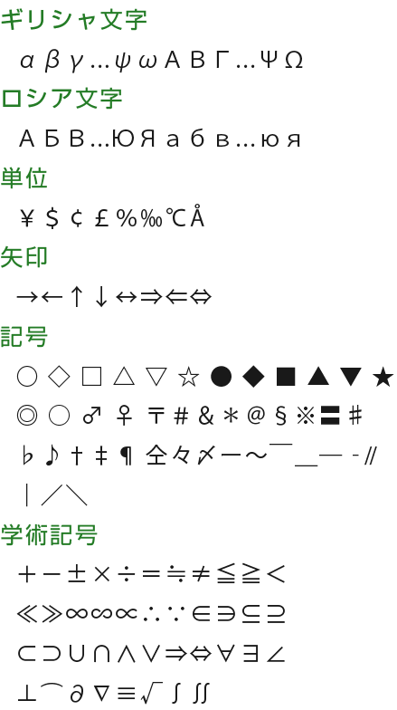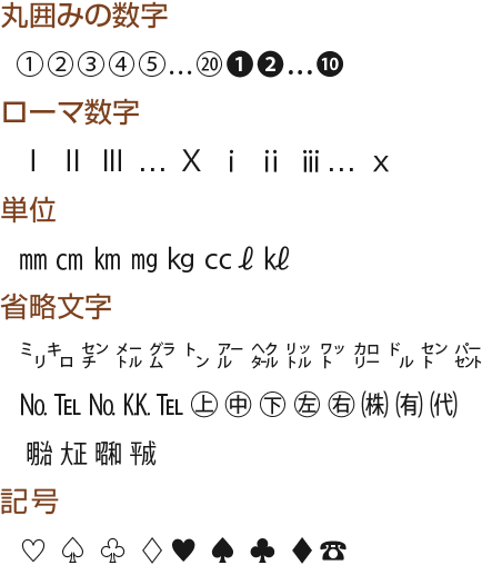 一方、次の文字は、WindowsでもMacでも共通で使える、文字化けしない文字です。