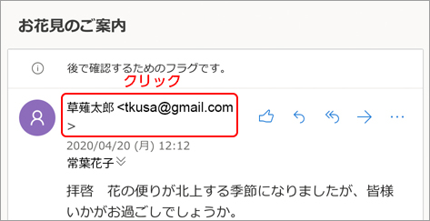 メールメッセージを表示し、メールメッセージの送信者名をクリックします。