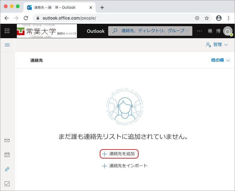 もしくは、Microsoft 365の「連絡先」アプリケーションを起動します。