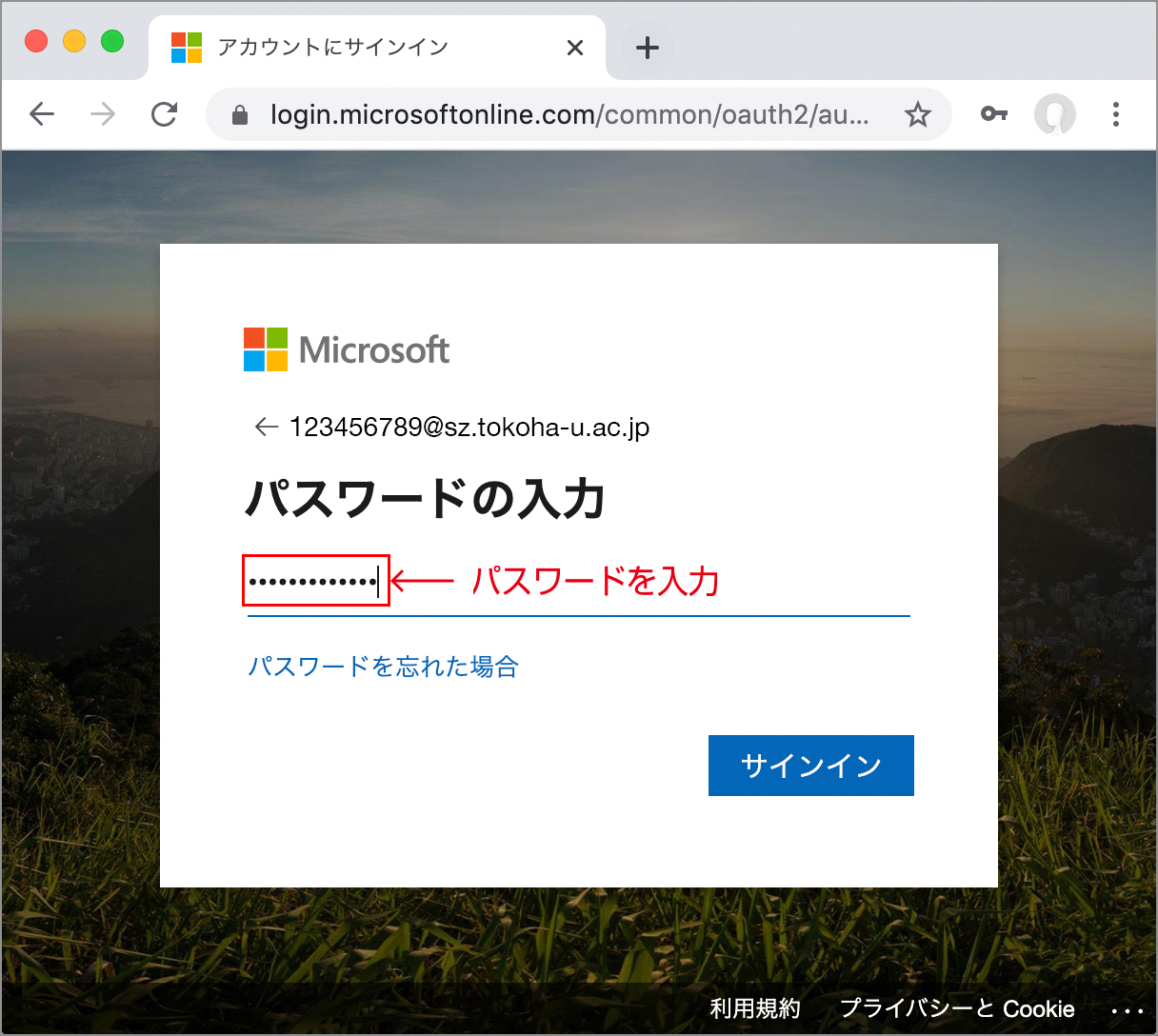 パスワードを入力し、「サインイン」ボタンをクリックします。